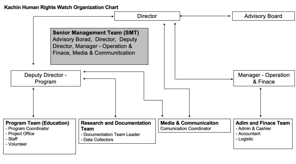 Kachin Human Rights Watch (KHRW) is a nonprofit and non-governmental organization. It was established in 2021. Kachin Human Rights Watch’s mission is to collect and record public voices, to distribute news, to promote justice against human rights abuses, to protect and raise awareness of human rights, and to support the emergence of a justice society in accordance with International Human Rights Laws.