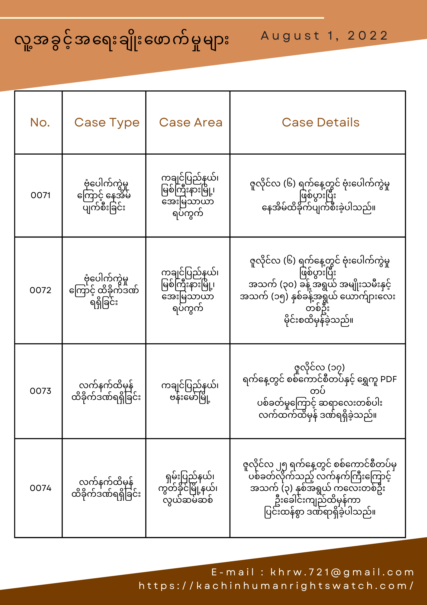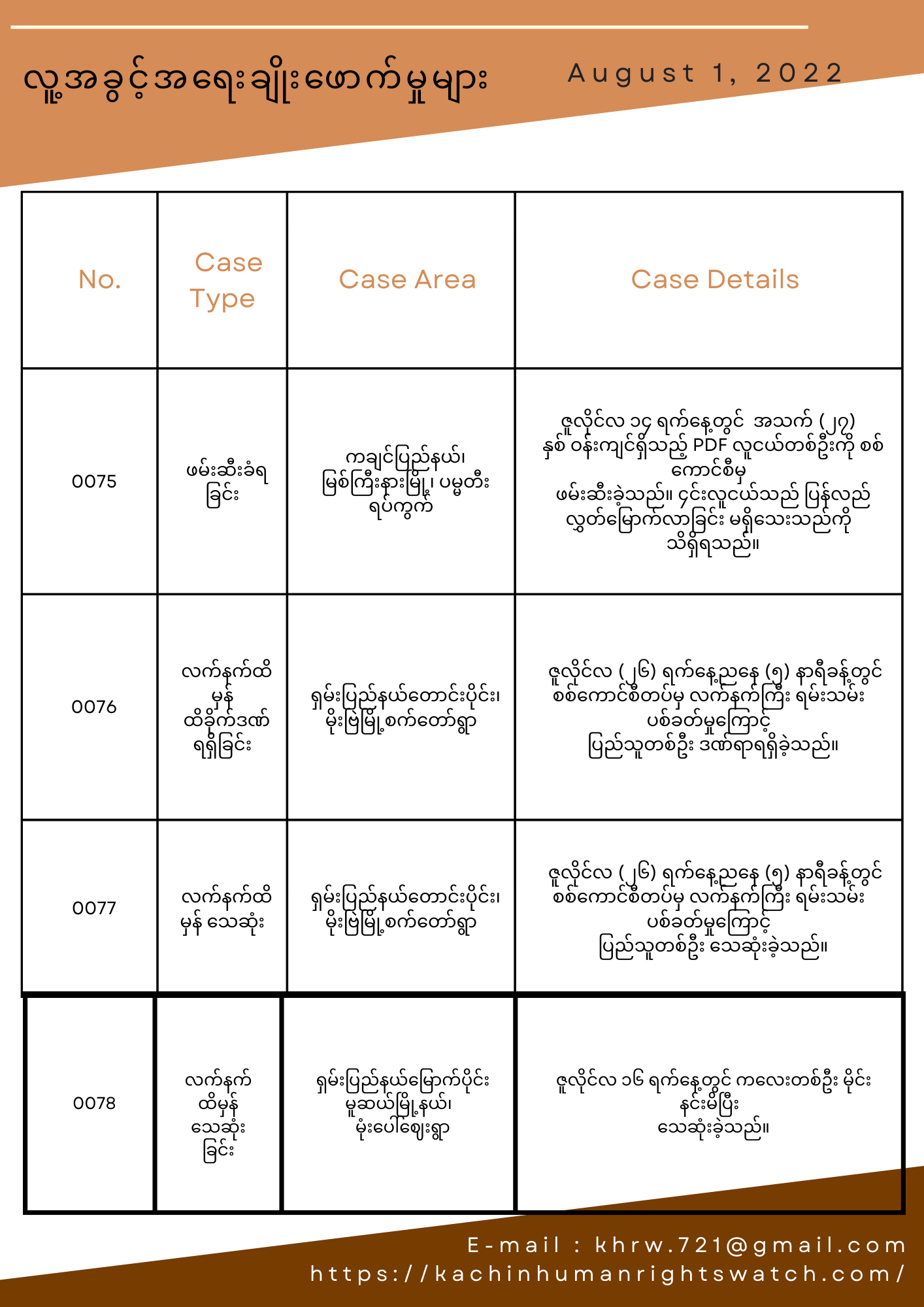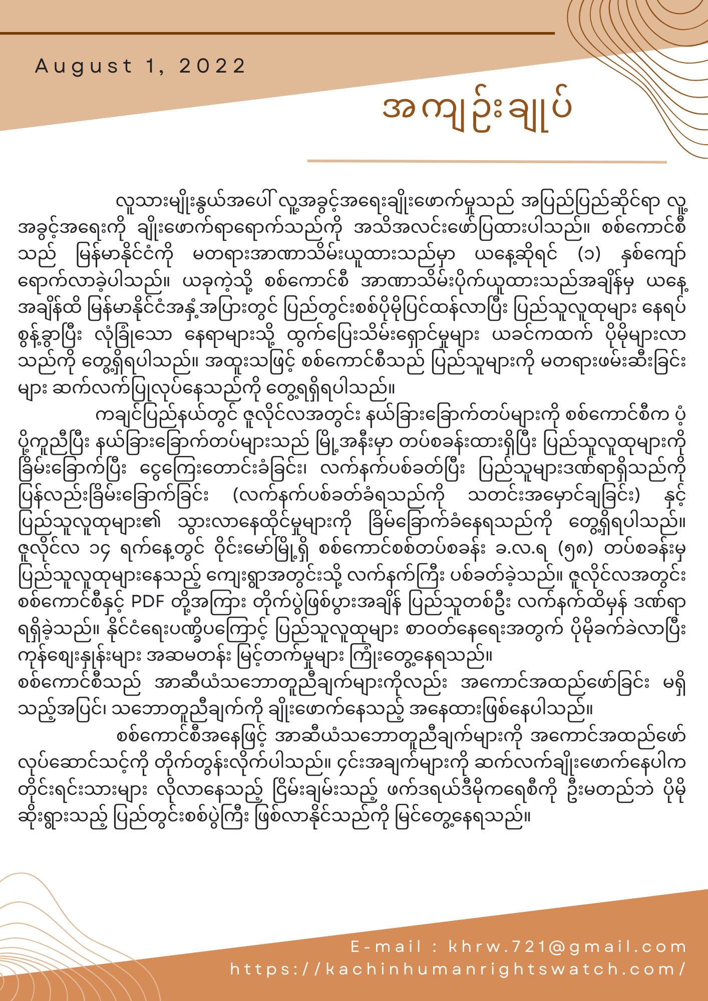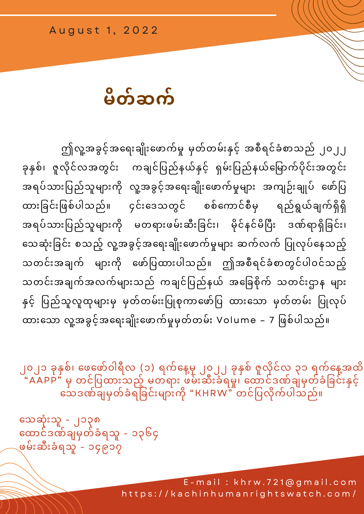 Kachin Human Rights Watch (KHRW) was established in 2021.