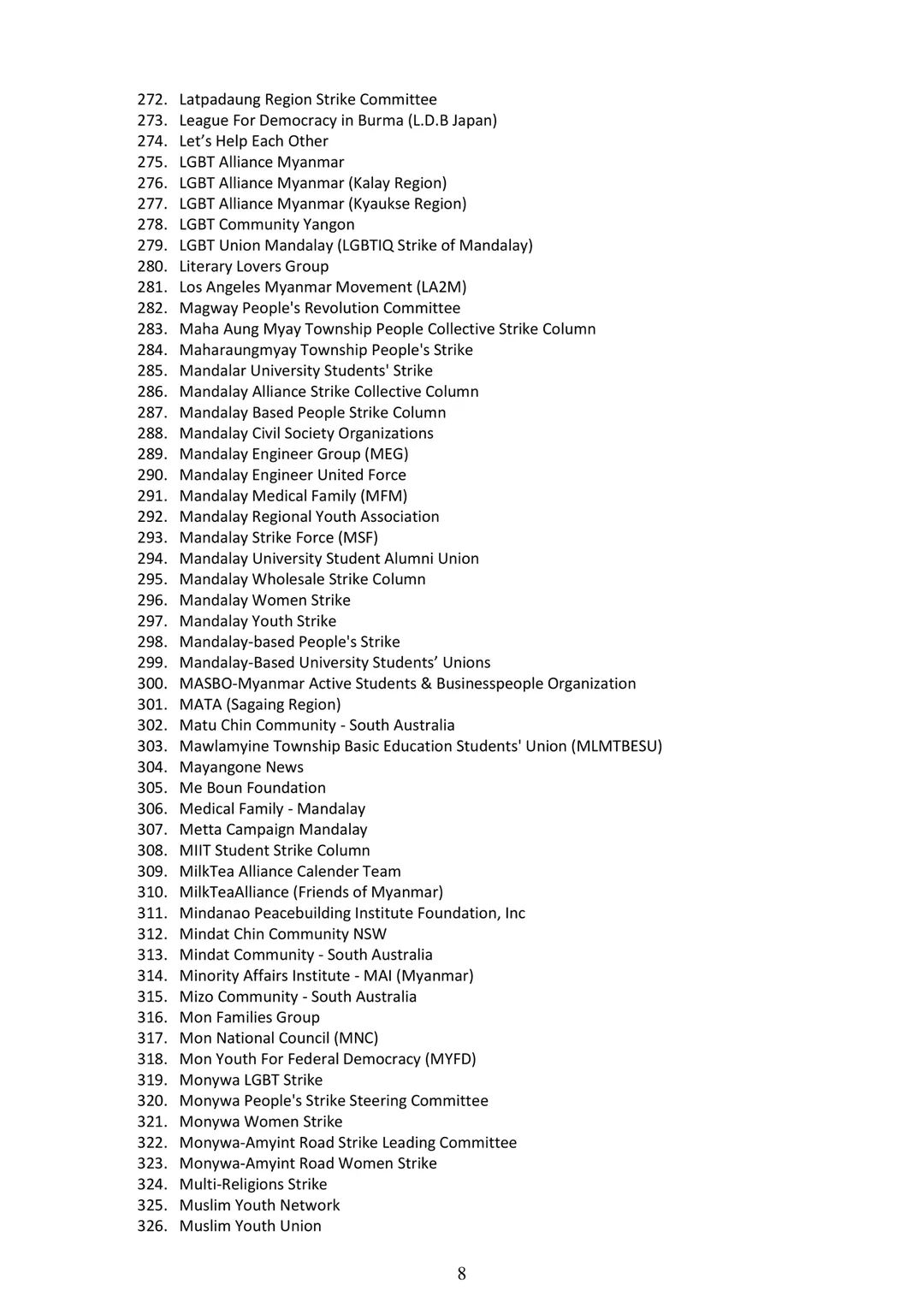 We call on the UN General Assembly (UNGA) and UN Member States to end the mandate of the UNSE at the upcoming session in September 2022. Additionally, the UNGA must formulate concrete actions which centered on accountability, and which reflect the will and demands of the people of Myanmar.