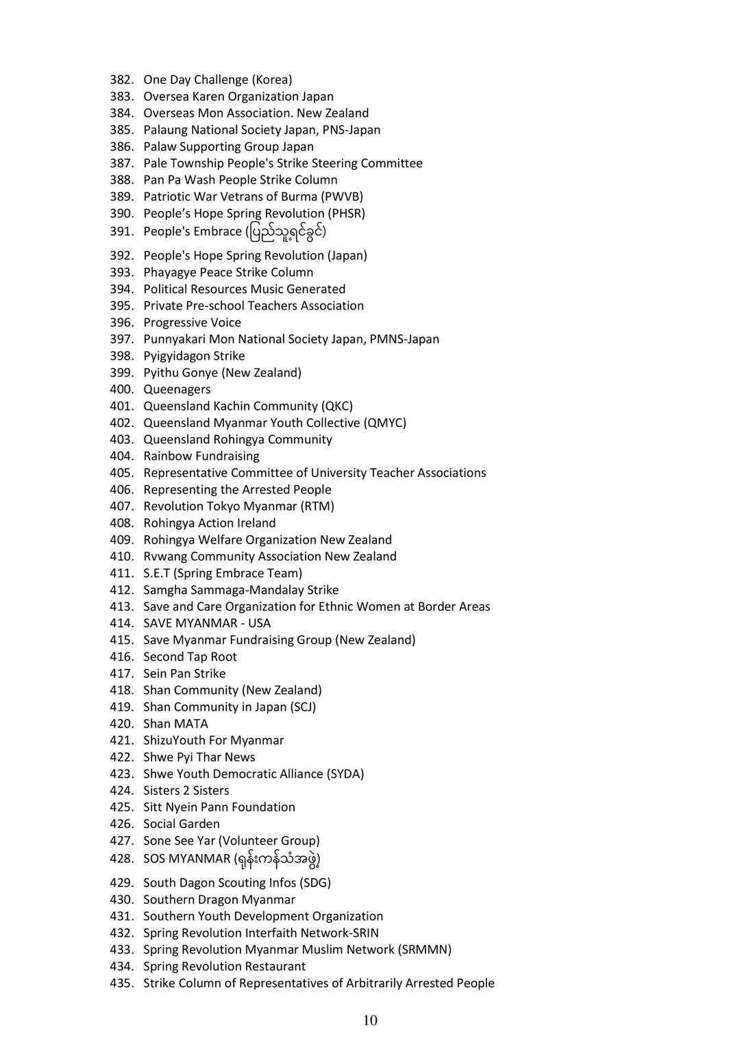 The junta is a terrorist organization under Myanmar’s domestic law and by international definition. The UN must exercise its mandate provided by the UN Charter to protect the people of Myanmar from the junta’s escalating violence. It must also work directly with the NUG as the legitimate government, the National Unity Consultative Council, EROs and CSOs to meaningfully and immediately address and resolve the catastrophic crisis in Myanmar, while disengaging from the junta. As the people of Myanmar asked in protests staged during the UNSE’s visit: “How many dead bodies UN need to take action?”